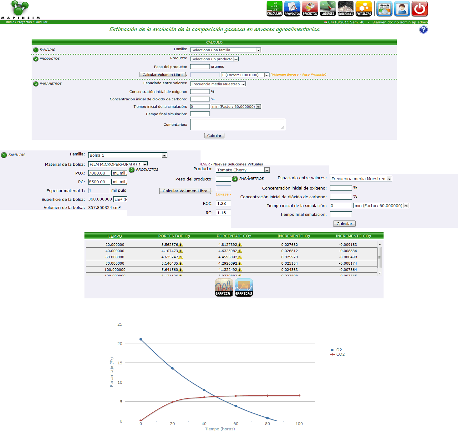 Herramienta para estimar la evolución de la composición gaseosa en el interior de envases de productos agroalimentarios, pudiendo seleccionar los parámetros de los que está constituido o incluso las condiciones de conservación.